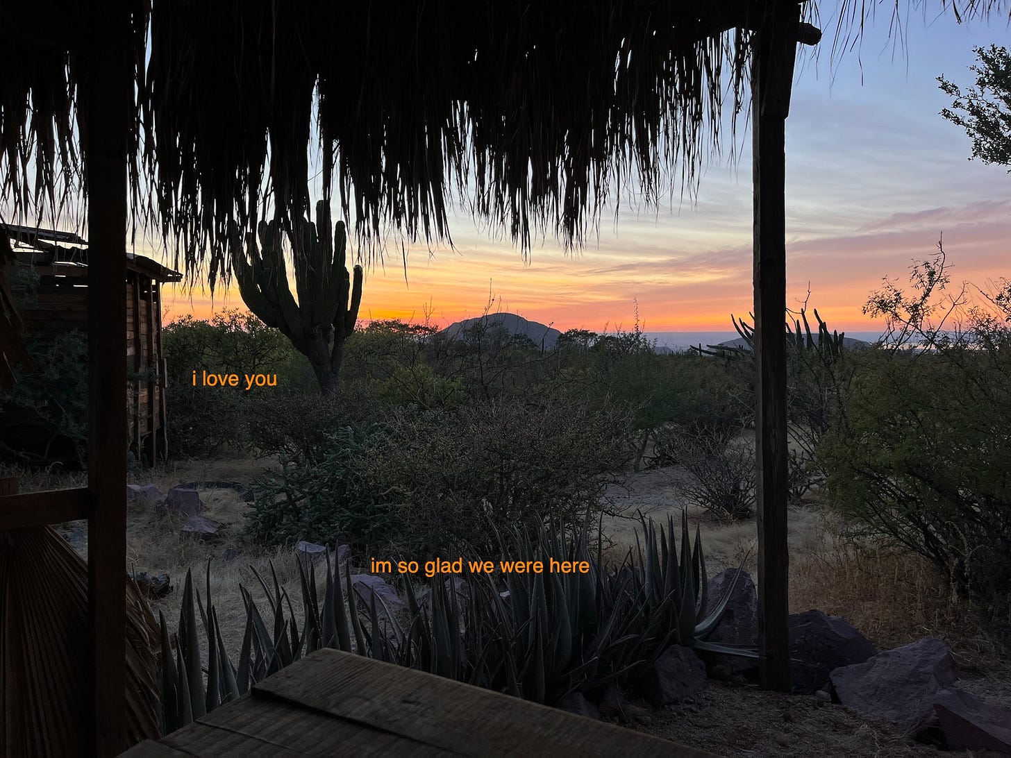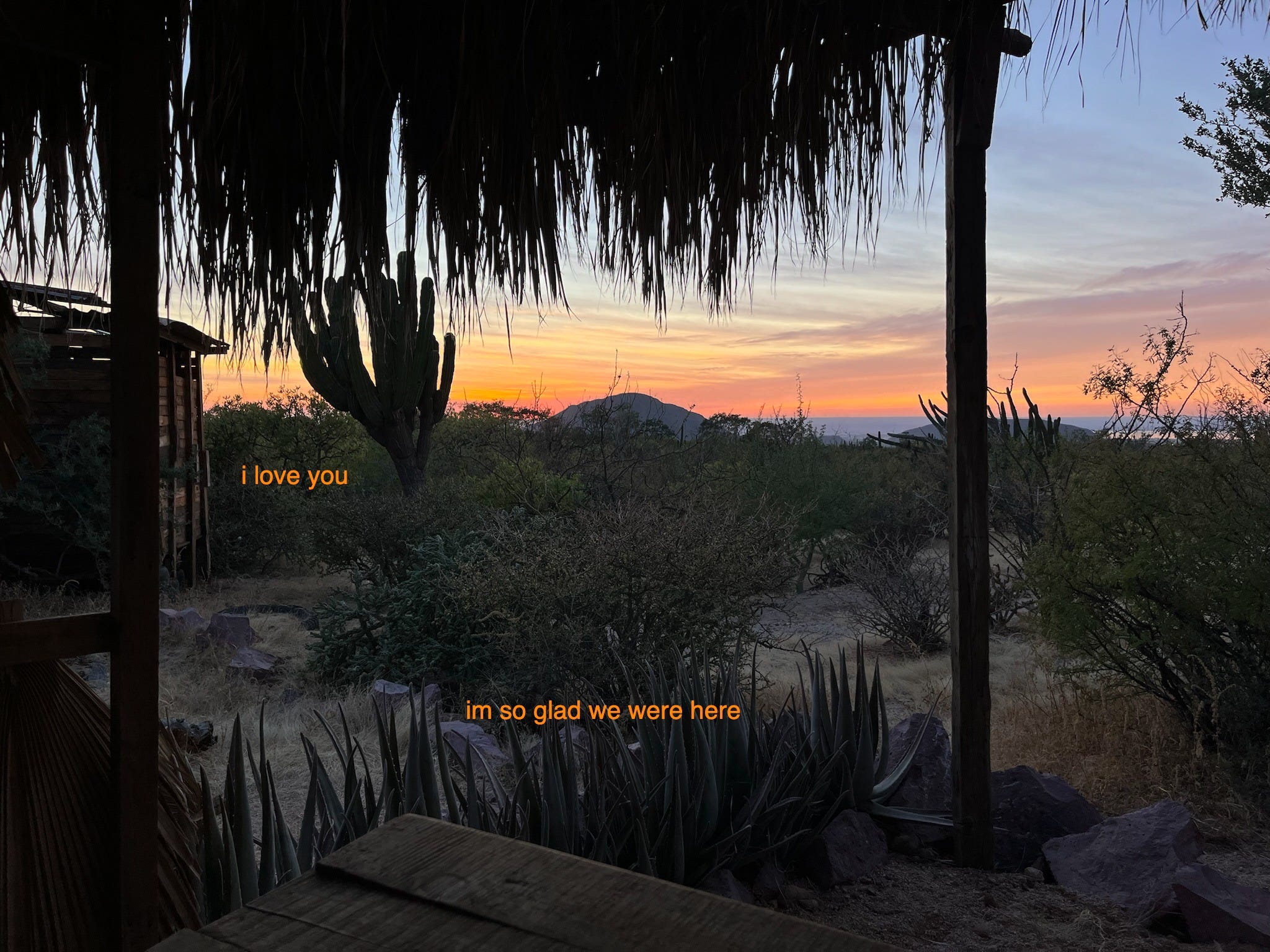 I’ve been learning from the desert / the desert isn’t lush and it isn’t green and it doesn’t make your primal heart say thank god we have water and food all around us / the joy is in the process of things / the walk between the basement and the fridge, the search for a lighter for the stove, the picking of dry leaves off the branches for the compost toilet later / the sunrise waking us and the sunset putting us to bed /